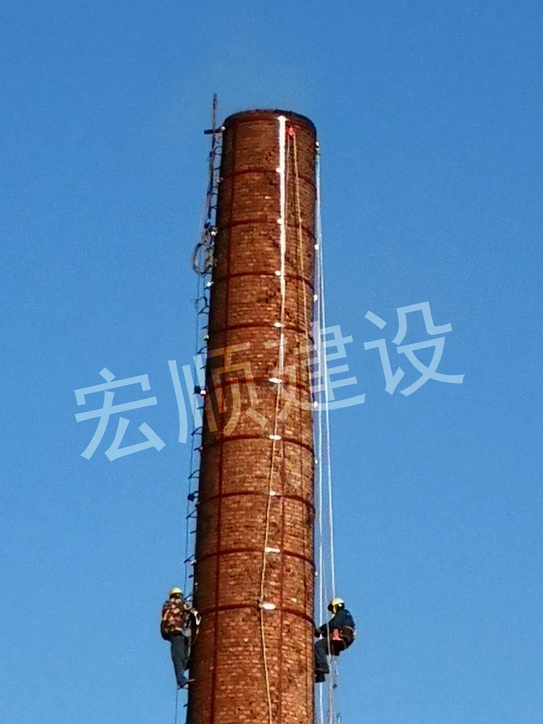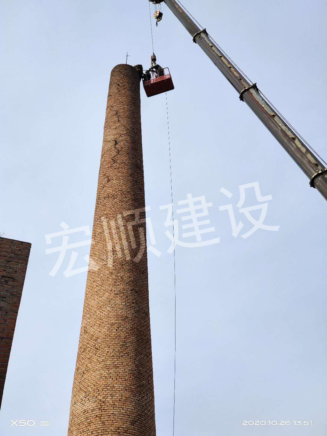 宏順建設最新承接了齊齊哈爾當?shù)匾粋€鍋爐房煙囪頂口裂縫需要拆除部分后加固,我們施工前做了這些準備: