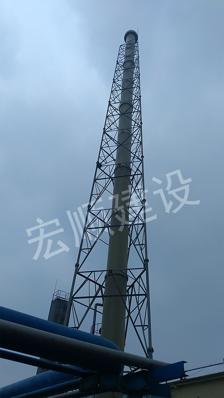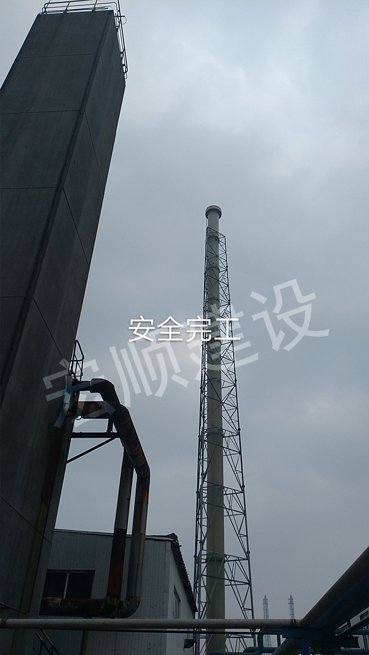 宏順建設(shè)施工人員到現(xiàn)場(chǎng)準(zhǔn)備煙囪避雷針安裝工作