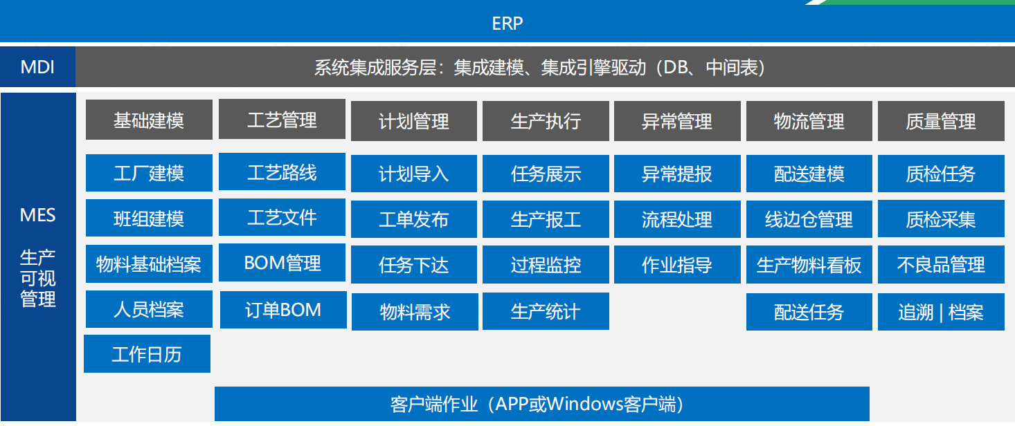 生產(chǎn)監(jiān)視、數(shù)據(jù)采集、工藝管理、品質(zhì)管理、報(bào)表管理、生產(chǎn)排程、基礎(chǔ)資料、OEE指標(biāo)分析、薪資管理、數(shù)據(jù)共享、任務(wù)派工等。